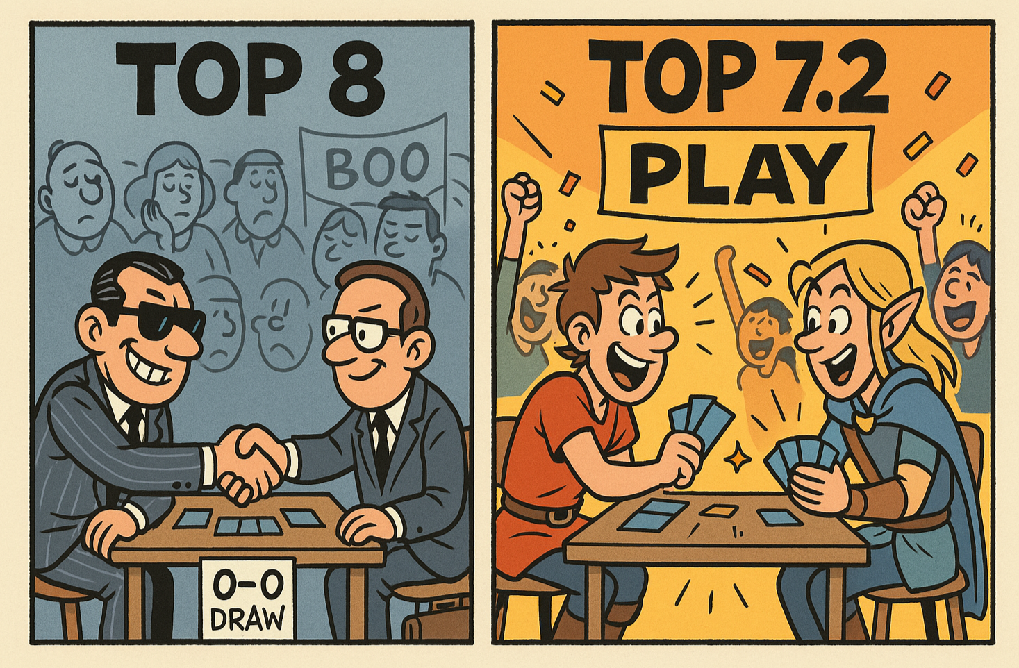 With Top 8, Swiss is basically just a qualifier to a second tournament. With Top 7.2, the best Swiss performer who wins the last two rounds gains a large structural reward: one fewer elimination match to win the event. Swiss stops being “just to get in” and starts deciding a big advantage inside the bracket.