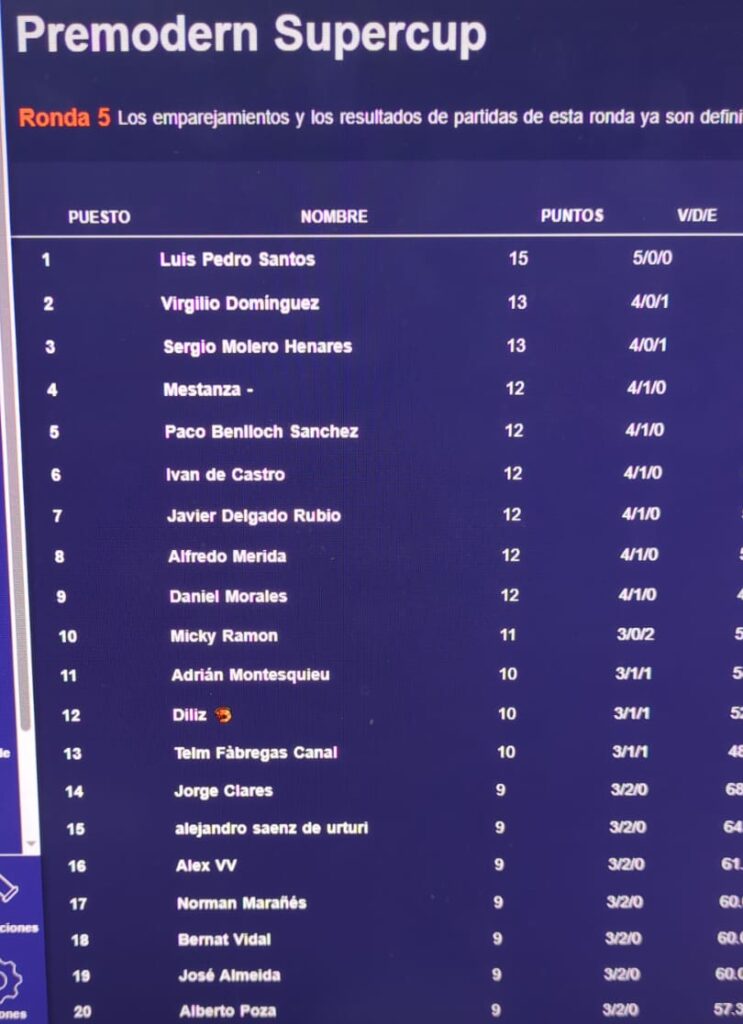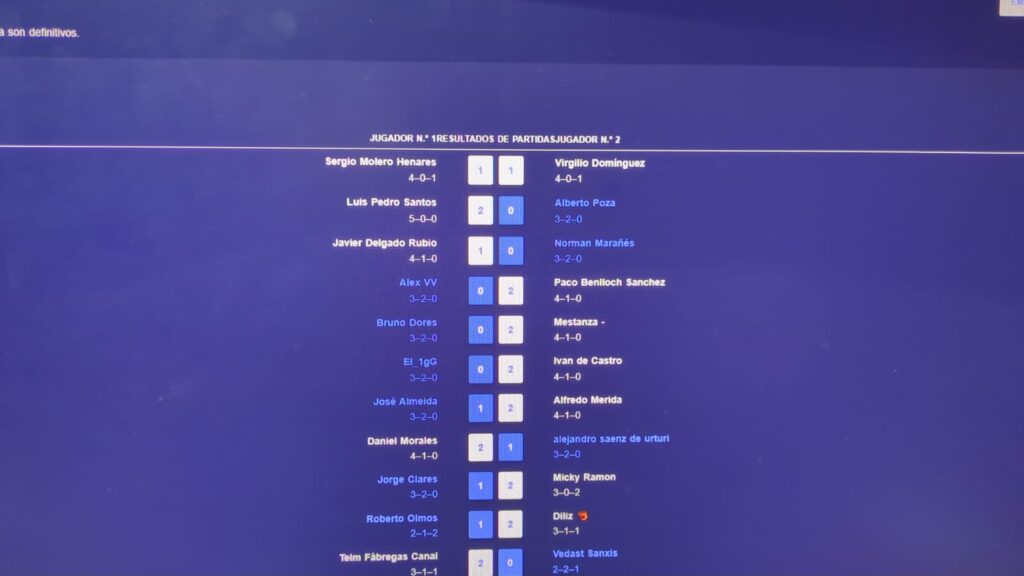 Tras la cuarta ronda había 3 jugadores con 12 puntos (4-0): Virgilio Domínguez, Sergio Molero Henares y Luís Pedro Santos.