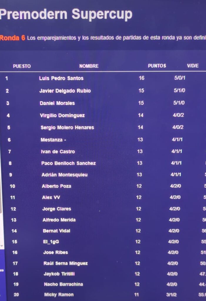 • Ganó a Luís en cuartos de final, una ronda que no debería haber existido si la mesa 1 hubiese jugado y Luís hubiese ganado su bye, excepto en el raro caso de que hubiesen jugado y empatado de forma natural por falta de tiempo.