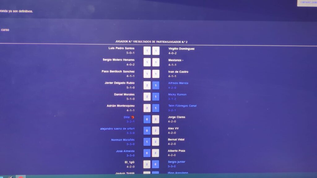 El efecto del pacto es inmediato: Sergio y Virgilio ya no podían conseguir el bye en la ronda final, porque la condición exige ganar las dos últimas rondas.